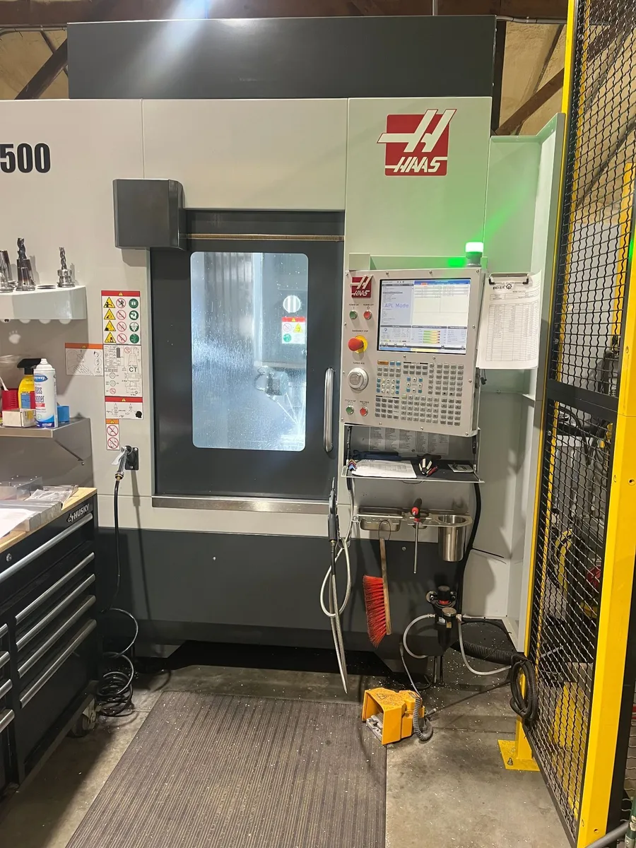 Boost productivity with the 2022 Haas UMC-500. Compact 5-axis VMC featuring 24" X / 16" Y / 16" Z travels, 15,000 RPM inline spindle, 40-taper, 30+1 side-mount ATC, and Robotics package for lights out machining.